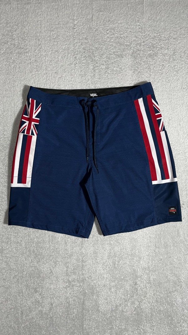 Bermuda de baño Vans, packable. Tiene cordón ajustable y bolsillo para hacerlo bolsito.